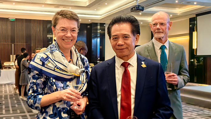 何绪明与德国大使傅融、摩尔多瓦大使杜米特鲁·贝拉基什亲切交流,并向大使发出2024世界物联网大会邀请。